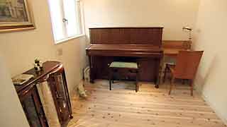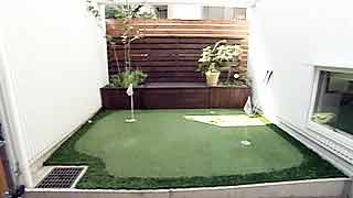 | お施主様はご夫婦揃ってゴルフが生活の一部となっており、この住宅の1番のご要望は室内で思い切りクラブが振れる練習室を作ることでした。 敷地が約25坪と広くはなく、室内練習室の有効寸法が幅3.2m×奥行5m×高さ3.3mとボリュームが大きいので他の部屋のボリュームは極力最低限の大きさに押え、各部屋の視線の抜けや窓の位置、大きさに特に注意をして室内練習室のまわりにいくつもの小さな居場所を作るように心掛けました。例として、各部屋の窓からのぞける庭のパターグリーンや室内練習室も眺められるピアノ室と事務室、食事やパソコンができる居間としての19番ホール(バーカウンター)などです。竣工後おじゃまするとピアノを聴くために階段がちょっとしたベンチになっていたりと、我々が想定していない居場所がいくつもできていました。ゴルフというひとつのジャンルを通じての住宅というよりはご夫婦のライフスタイルがそのまま自然に浮かんできたような住宅が完成したのではないかと思っています。 |