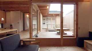 | 都会の限られた土地を最大限に使い切るというコンセプトで設計に取り組んだ。住宅密集地の内で安らぎの空間を獲得するには外に閉じて内に開くという手法がベストだ。中庭をつくり、そこを中心に間取りをまとめる。初めに中庭ありきである。目線が通り抜ける様に空間を構成し、部分々々に連続感をもたせて面積の割には広い感じになる様錯覚を起こさせている。 | |||||||||||||||||||||