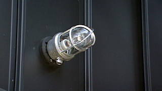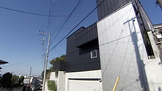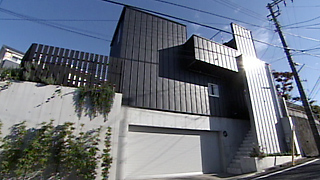 高台の傾斜地。玄関前の階段から富士山が見えます。学生時代から「建もの探訪」ファンというご主人こだわりの船舶照明がワンポイント。 |