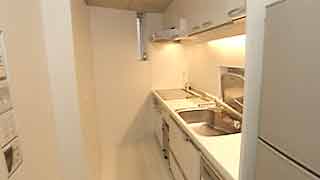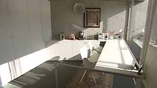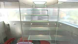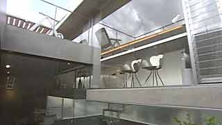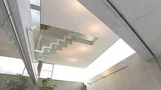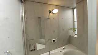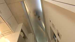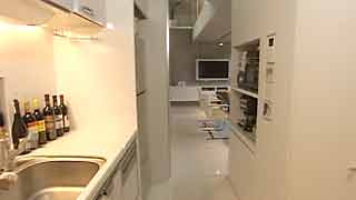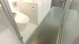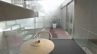 キッチンの上部にあたる、ガラスの床の水まわり。浴室もガラスでテラスと繋がる事により、透明感と開放感を味わえます。 |
