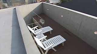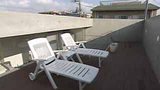 コンクリートの壁が、プライバシーを保つように設計された屋上テラス。ここからも、愛車が眺められます。 |