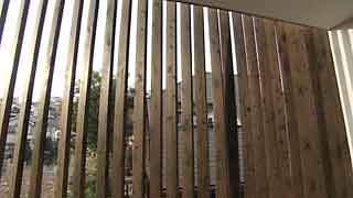 主寝室と子供部屋は「守られた」雰囲気を作るため、階段を2つ設けて玄関からの動線を長くとり、テラスには格子を付けています。 |