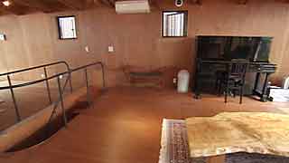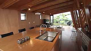 | 敷地の西側は崖地になっていて、そこからイチョウの大樹を眺めることができる良い場所です。東西に設けた大窓は抜けを感じさせ、家族はもちろん来客が大勢来ても寛げる空間となっています。南側の斜め壁がさらに空間の広がりを演出していて、お子さん達もここで夢を抱きながら成長していくのではないでしょうか。 | |||||||||||||||