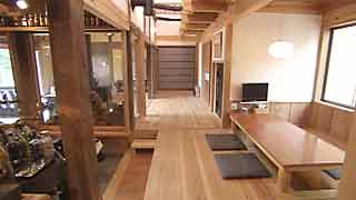 | 周囲を大樹や竹林に囲まれていて、それらが気持ち良い空気を運んでくれます。素晴らしい環境です。 古民家を再生したお宅です。古い材と新しい材が手を結んで、これまた気持ちの良い空間を生み出しています。古い物を大切に長く使うという事は環境にやさしいんですが、小関さんのお宅は熱環境にも優れていて、冬は薪ストーブだけ、夏は窓の開け閉めだけで快適に過ごせるそうです。周囲の環境、建物、日本の伝統の良い所をもう一回考えるきっかけになる建物でした。 | |||||||||||||||