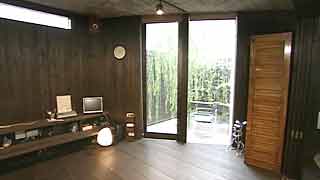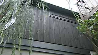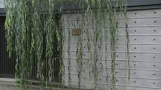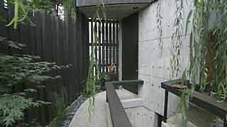 都心の住宅地。黒い板壁、木目を写したコンクリート塀、縦格子の門扉が落ち着いた和の雰囲気を醸します。大きな柳の木がシンボルです。 |