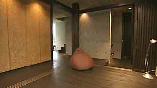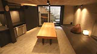地階は仲間が集まるセカンドダイニング。専用の入口があるので、来客は外から直接出入りできます。土間に埋め込まれたレンガは、上海の取り壊されたビルで使われていた物だそうです。 |