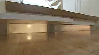 1階と2階、2階と3階の間には小さな段差が設けられています。これは上下階を繋いで、光と風を家中に行き渡らせると同時に、家族が互いの気配を感じられるようにとの配慮です。 |