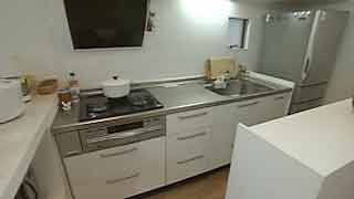 シンプルなキッチン。ダイニングとの間の収納を高くする事で、リビングダイニング側からの見た目をスッキリさせます。ここも『フラップ窓』で1日中明るい場所になっています。 |