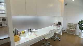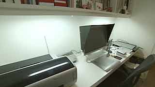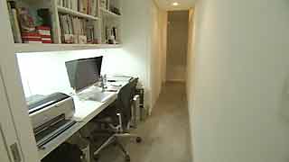 玄関に最も近い場所が奥さんの仕事室。写真家という仕事柄、機材の出し入れが多いので、玄関に近く、靴を履いたまま出入りできる土間にしました。 |