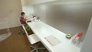3階の階段を上がってすぐの場所はDEN。子供たちの勉強場所です。さらに1段上がった奥の部屋が、将来、子供たちの寝室になる予定の左右対称の部屋です。 |
