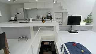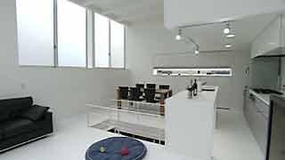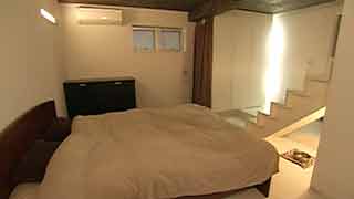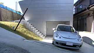 | 坂をのぼった高台にある建物です。2階のワンルームは色々なところに大窓・小窓があって明るいですね。東側トップライトから光が、壁の傾斜と一緒に2階から地階まで落ちてゆく。1階のガレージでは愛車を大事にしています。また愛犬レオンちゃんのことも考えて設計されていますよね。さらに友達を招き入れるというコンセプトが、この建物を大らかにしている。そんな感じが致します。 | ||||||||||||||||||||||||||||||||||||