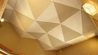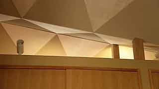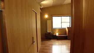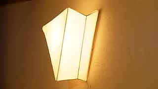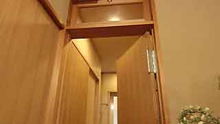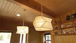 2階北側は主寝室。土壁と和紙のパターン天井は欄間を通じて、ご主人の書斎と繋がっています。ここにも和紙で作ったオリジナルの照明器具があります。 |