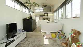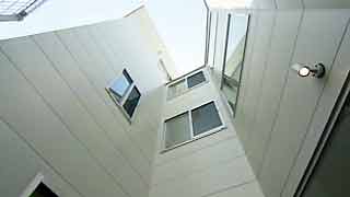 | 幅が狭く奥行きが深い都市らしい敷地の建物ですが、見せ場がたくさんあります。 1つ目は、お風呂。桜並木に面した立地を存分に活かし、季節ごとの絶景を眺めながら入浴できます。 2つ目は、3階のLDK。幅の狭さを天井の高さと窓の採り方で、明るく広々とした空間にしています。 そして3つ目は、中庭。暗くなりがちな北側の部屋に光と風をもたらします。 若い家族が生活をおくる舞台となる清々しい建物でした。 |
