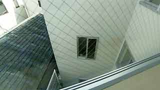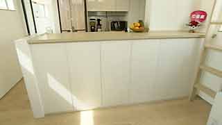 | 1階は奥さまが経営されるワンちゃんのトリミングショップ、2〜3階にご家族4人が住まわれる、木造3階建ての都市型住宅です。 幅4m奥行22mと細長い路地状の敷地です。全面のみ桜並木の緑道に面し、3方はぐるりと隣家に取り囲まれています。桜並木を室内より愉しめるように、また建物の真ん中に中庭を設けそこから光と風を取入れ、建て込んでいても廻りの視線を気にすることなく心地よい空間が得られるように計画しています。 |