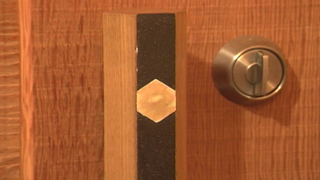 職人技の散りばめられた建物。玄関扉の取っ手は米松材と漆喰のコンビに螺鈿を嵌め込んだ物。靴収納など建具は杉の“源平”を組んだ物。内壁の漆喰も上下階で塗り方を変えています。 |