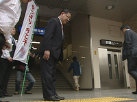 補欠選挙の告示まえに駅前で挨拶をする山崎氏