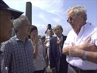 ヒロシマで当時を語る轡田氏と ザップ氏