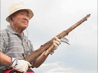 土の中から出てきた銃を持つ 元兵士・鈴木貞雄さん