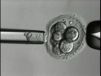 着床前診断のため、受精卵の細胞を取り出す瞬間(受精3日目)
