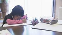 マアヤちゃん、10歳。自宅にてマンガを描く様子