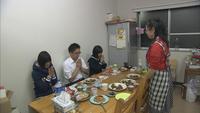 生徒達に夕食を出す番場さん