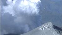 噴煙と灰に埋まる頂上の山荘付近 9/29撮影