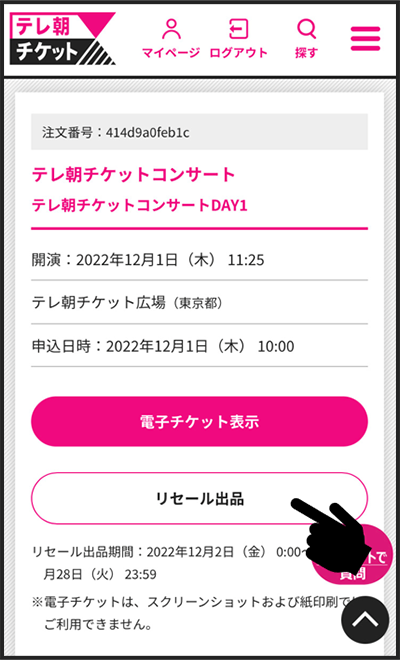 リセール出品は、チケットを購入したご本人のみ行うことが可能なサービスです。