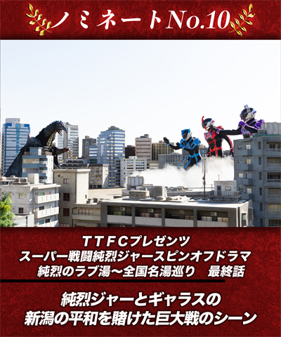 大賞を決めるのは東映特撮ファンクラブ会員の皆様です! ノミネートNo.1~No.10より、あなたが思わず涙した、かっこよさに鳥肌が立った、笑いが止まらなかった、あのシーン、このシーンを選んでください!