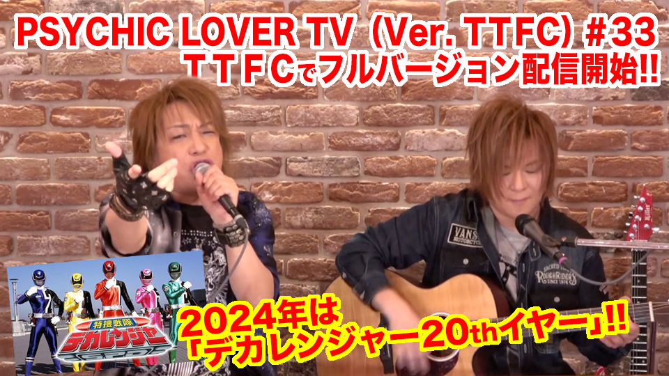 本日(12/27)より配信開始、2023年最後の『PSYCHIC LOVER TV(Ver. TTFC)』#33は、サイキックラバーが初めてスーパー戦隊に参加して主題歌を務めた『デカレンジャー』から、『girls in trouble! DEKARANGER』の秘話を中心に語ります。