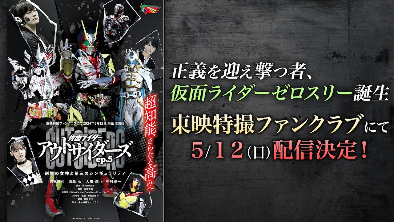 新たな仮面ライダー、「仮面ライダーゼロスリー」が誕生! TTFCオリジナル『仮面ライダーアウトサイダーズep.5 創世の女神と第三のシンギュラリティ』は、5月12日(日)より東映特撮ファンクラブ(TTFC)で配信!