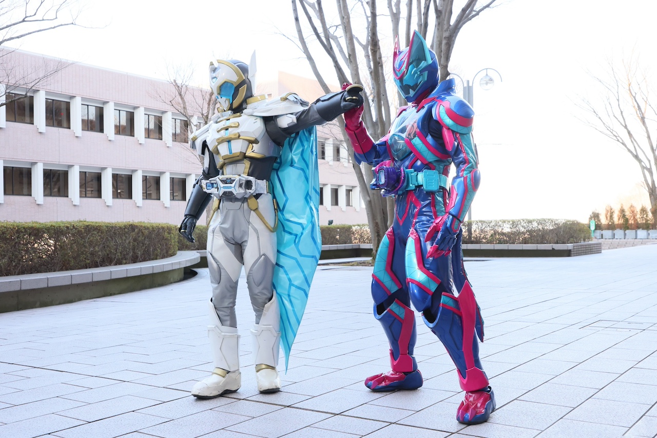 「仮面ライダーゼロスリー」が解禁となりました。最強の人工知能であり自身を救世主と謳う「ゼイン」が変身した「仮面ライダーゼイン」と並び立つ姿も公開。