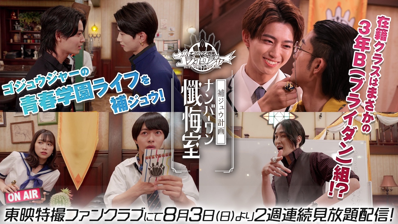 このエピソードと連動するのが東映特撮ファンクラブ(TTFC)のスピンオフミニドラマシリーズ『ゴジュウジャー補ジュウ計画 ナンバーワン懺悔室』の、本日配信『No.21 第24話補ジュウ計画「青春の懺悔室」』と、次週配信『No.22 第25話補ジュウ計画「続・青春の懺悔室」』。なんと! ゴジュウジャー全員がクラスメイトになって学園ライフを送ります。