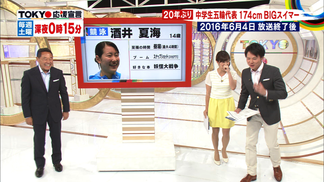 競泳界で20年ぶり!14歳で五輪出場!身長174センチ 酒井夏海選手! 松木安太郎さんをビックリさせたのは、ビッグな身長だけじゃない!