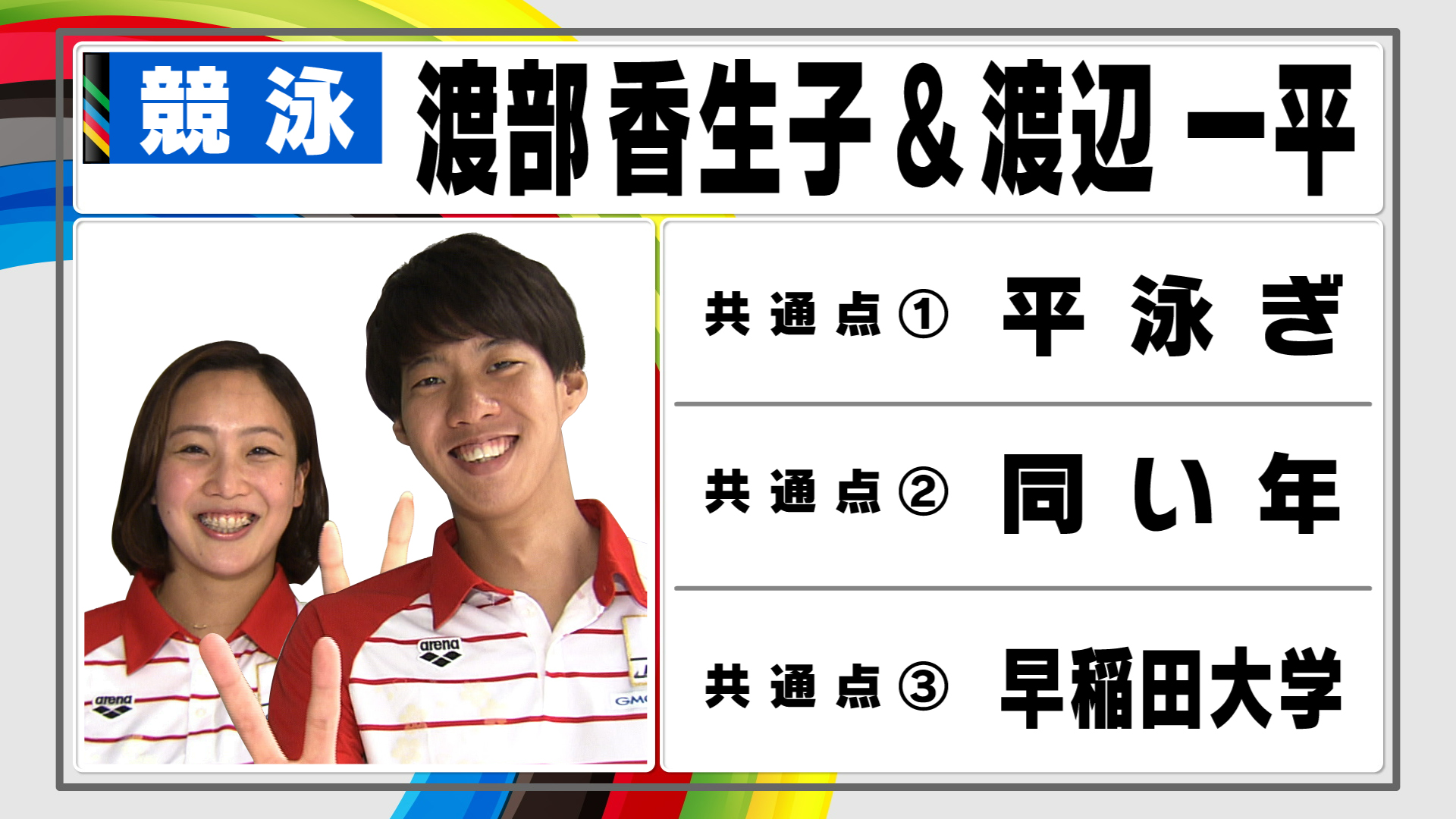 現 世界記録保持者の渡辺一平と、2015年世界水泳金メダルの渡部香生子。