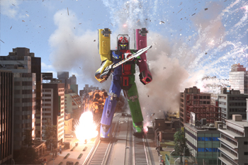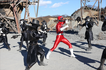 そんな中、光り輝く虹のレール“レインボーライン”が浮かび上がり、その上を力強く走る正義の軌道車両“烈車”に乗った4人のトッキュウジャーが登場。シャドー怪人・バッグシャドーと戦うトッキュウジャーの姿を見たライトは、生身にもかかわらず、子どもたちを守るため立ち向かう! …が、バッグシャドーの攻撃を受け吹っ飛んでしまう。