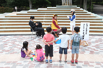 …するが、ただそれだけ。ジャックインザボックスシャドーたちは全く笑わない。ギャグが滑ったライトはひどく落ち込んでしまう。そこに明が登場! いつものハーモニカではなく縦笛を吹きながら。なぜ縦笛? それを見て、ライトたちもジャックインザボックスシャドーたちも大爆笑し、吹っ飛んでしまう。明には笑わす気など全くなかったのだが…。