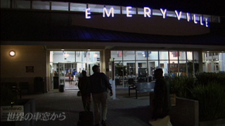 夜の車窓に海が うっすらと見えてきました 午後9時6分 シカゴから2泊3日の旅を終え カリフォルニア・ゼファー号は 終着駅のエマリービルに到着しました 予定より4時間以上遅れての到着ですが 文句を言う乗客はいないようです サンフランシスコ市内に アムトラックの駅はありません 乗客たちは専用のバスに乗って 市内に向かいます |