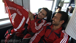 車内でおそろいの赤いジャージを着た サッカー・チームに出会いました これからミニヤで試合があるそうです チーム名はテレコム・エジプト 国営の電話会社に所属する プロリーグ2部のチームで 2006年に結成されたばかり まだ新聞の一面を飾るような強豪では… ありません