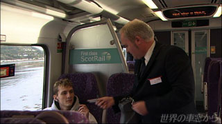 この列車の車掌はマルコムさん エルギン駅で事務をしていましたが 列車に乗って仕事をしたいという 思いから3年半前に車掌に転向しました