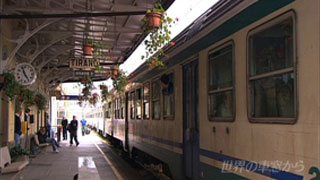 連なる山のあいだを 列車は東に向かって走ります 帰宅途中の高校生たち その中に一人、日本語を習っていたことがある という女の子がいました 「何か話してくれない?」と頼んでみたところ 「もう忘れちゃったわだって難しいんだもん」 というつれないお返事… 午後4時52分 定刻より10分遅れて 列車は終点のティラノに到着しました |
