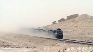 時には1日に何度も発生する砂嵐 列車が巻き上げる砂塵も混じり 車窓の風景をさえぎります