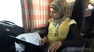 アレッポの大学に通う女子大生たちが たくさん乗っていましたみんな勉強熱心です