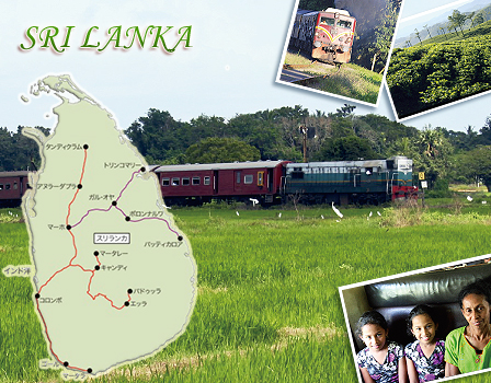 スリランカはインド洋に浮かぶ島国。面積は日本の1/6で、そのほとんどがエメラルドに例えられる豊かな緑に覆われています。最大都市コロンボを起点に、南へ、東へ、そして北へと向かう鉄道の旅。線路の傷みは激しく、列車はオンボロですが、眩しい熱帯の太陽を浴びて、島全体が生命で躍動しているように感じられます。列車の行く先には、青く輝く海、植民地時代の建造物、深く険しい山々、そして過去の栄華を今に伝える壮大な仏教遺跡の数々が待っています。26年に及んだ内戦もようやく終わり、未来に向かって歩み始めたスリランカ。出会った人々の笑顔からも、新しい希望が伝わってきました。 |