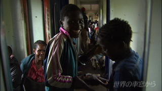 ザンビア鉄道の車両は お世辞にも快適とは言えません 激しい揺れ 飛び越えなくてはならない むき出しの連結部分 割れている窓もあちこちにあります 窓の外に目をやれば うち捨てられた貨車がゴロゴロと転がっています 何だか心配ですが とにかく列車は走り出しました さっそく出発時間を お迎えの誰かに連絡中でしょうか こちら靴の手入れに余念がないのは 列車のセキュリティの人たちです もしもの時には頼りにしてますよ 目的地の首都ルサカまではおよそ18時間 終点のキトウェまで行くとなると 34時間かかります 先は長い |
