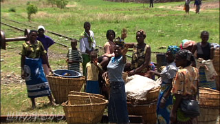 雲が切れて青空が見えてきました 列車はタラに到着です 大きなカゴを持った人たちが 降りていきます これらのカゴいっぱいに果物を入れて リビングストンの市場に 売りに行った帰りなのだそうです とってもよく売れたのだそうでみんな上機嫌 「家はこの駅の近く歩いて帰るのよ」 とおっしゃるので 「どのくらい歩くんですか?」 と聞いてみたところ 「ほんの十キロくらいかな…」 という答えが返ってきました 荷物をかかえて10キロ!ですか…? さすがアフリカ 「近さ」の基準が私たちとは違いますね ではさようなら気をつけて! |