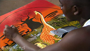 ダルエスサラームを発つ前に 1960年代ユニークな絵画で一躍注目の的となった 頻繁に描かれる題材は動物たち タンザニア鉄道のダルエスサラーム駅は 海と内陸を結ぶ重要な交通手段 |