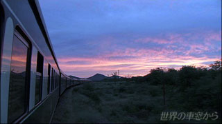 午前4時、バイトブリッジ駅に停車したロボスレイル ここはジンバブエ最後の駅です 出国手続きを終えたスタッフが車両の点検にまわります どうやら問題はなさそうです 5時、動き始めた車窓に美しい朝焼けが見え始めました 列車はリンポポ川を渡ります この川を渡ると南アフリカです |