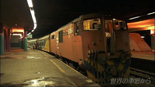 ヨハネスブルグ、パーク駅 大勢の乗客で混み合うホームの一角に ヨーロッパ系の家族がいました アパルトヘイトはもう過去の事 今はアフリカ系の乗客と仲良く同じ列車に乗ります この国の長距離列車は“ショショロザ・メイル”と 呼ばれています “ショショロザ”とは アフリカの言葉で“旅”という意味で “楽しい経験”が出来るようにと名づけられました 乗客たちが列車に乗り込みます 終点のポート・エリザベスまでの 1112キロを、20時間かけて走ります 沢山の花を運び込む人 幾つもの荷物を抱えて乗り込む帰省客 低料金で安全なこの列車は 南アフリカの人々の重要な交通機関です 曇り空のもと、ショショロザ・メイルは ヨハネスブルグを後にしました |