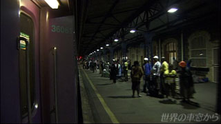黄昏の中 列車は幾つもの人生を乗せて走りつづけます 町の灯りが見え始めました 大きな町のようですね ヨハネスブルグ、パーク駅から407キロ 南アフリカの三つの首都のひとつ 司法を掌るブルームフォンテンに到着です ここで、ちょっと途中下車してみましょう あっ、ヨハネスブルグから乗った花屋さんも ここで降りるんですね |