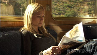 走り続けるブルートレイン ラウンジでは乗客たちが 気ままな時間を過ごしています のんびりと、過ぎ行く時間と風景を味わう この列車の楽しみかたは そんなところにあるのかも知れません 陽射しに包まれた風景の中 列車はケープタウンを目指し走って行きます |